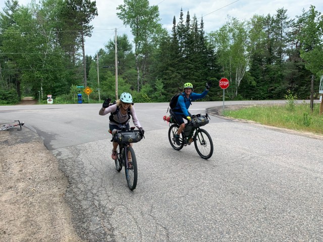 Paved shoulders, back roads and low traffic – Oh my! Crossing the famous Algonquin Park, what can you say? The relatively flat route was flanked by dense forest hiding the lakes for which the park is famous. Signs for canoe routes are frequent and tempting – if we had the right equipment.