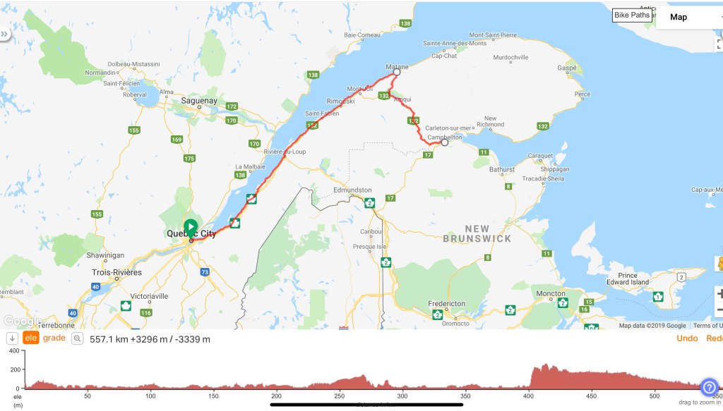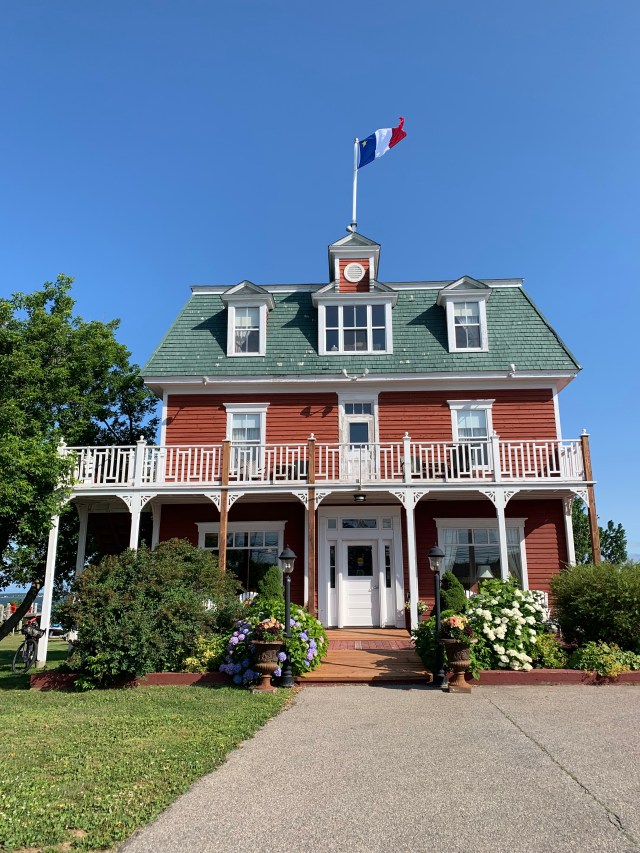 We detoured from Campbellton onto the Acadian Peninsula and the beautiful Chaleur Bay. The road was a little busier than we expected, but the shoulder was accommodating. Ended our day at the historic Hotel Paulin in Caraquet. Gerard and Karen are the third generation of the Paulin family to run the hotel. And what a marvellous hotel it is. Well worth the detour on its own. Gerard offered up a 2006 Beaujolais while sharing some history of the area, including the Acadian need to “fight for language and culture”, against movies, video games and TV. He also mentioned that the winter season was their busiest tourist season with snowmobilers coming from all over to explore their trails. This has also created a great quad business in the summer.