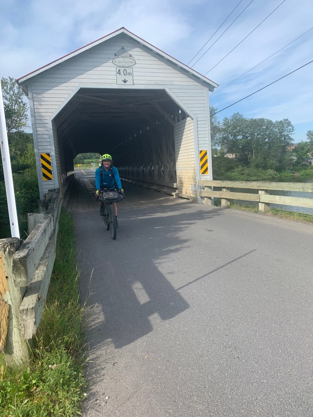 “Hot day for boiking” the eldery gentleman waved to us as we passed by, just kilometers beyond the New Brunswick sign. Jay yelled back, “Never too hot a day for boiking. Or biking!”.
