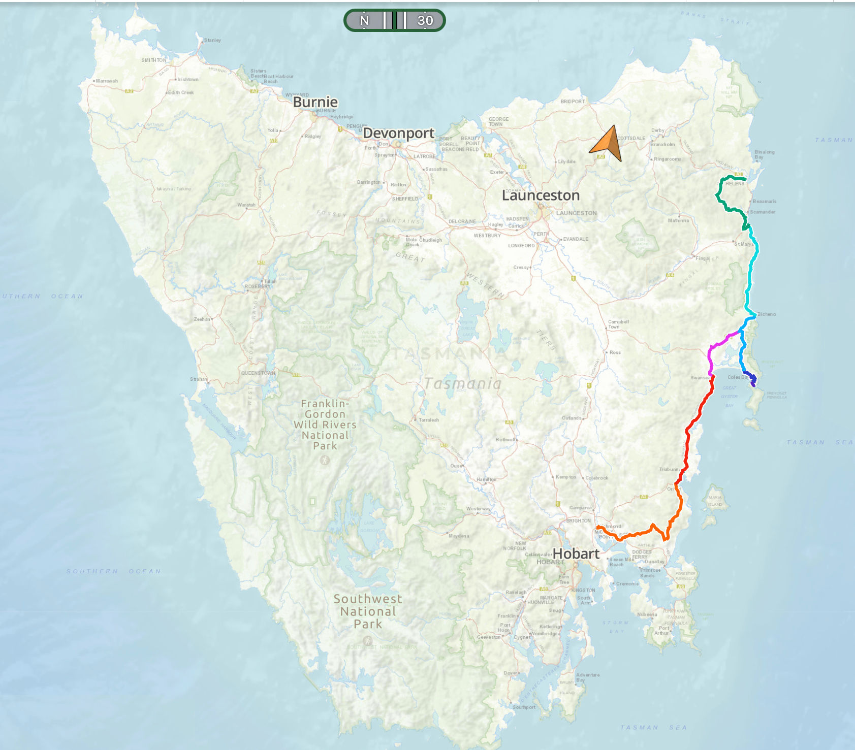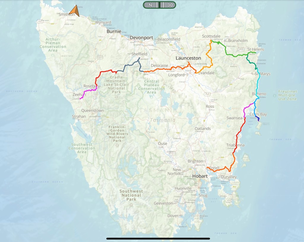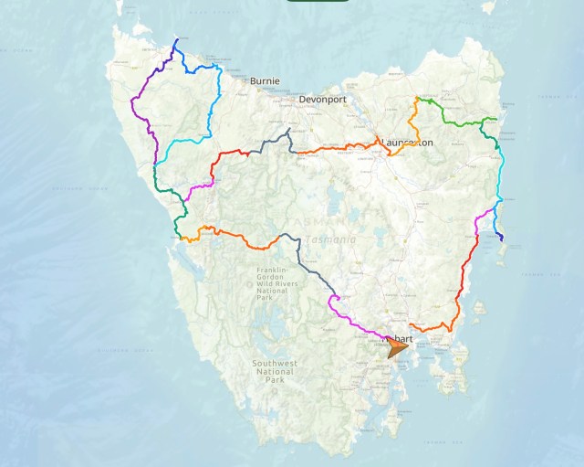 Nav Guy – “Our main nav tool in Tassie is Gaia. We still monitor with Google but Google needs to spend more time in Tassie, as it was wrong 50% of the time.” Non-existent routes, private property, dead ends… But between Gaia and our planned route and generous Tassies, we mostly avoided unnecessary penalizing kilometers and hills.