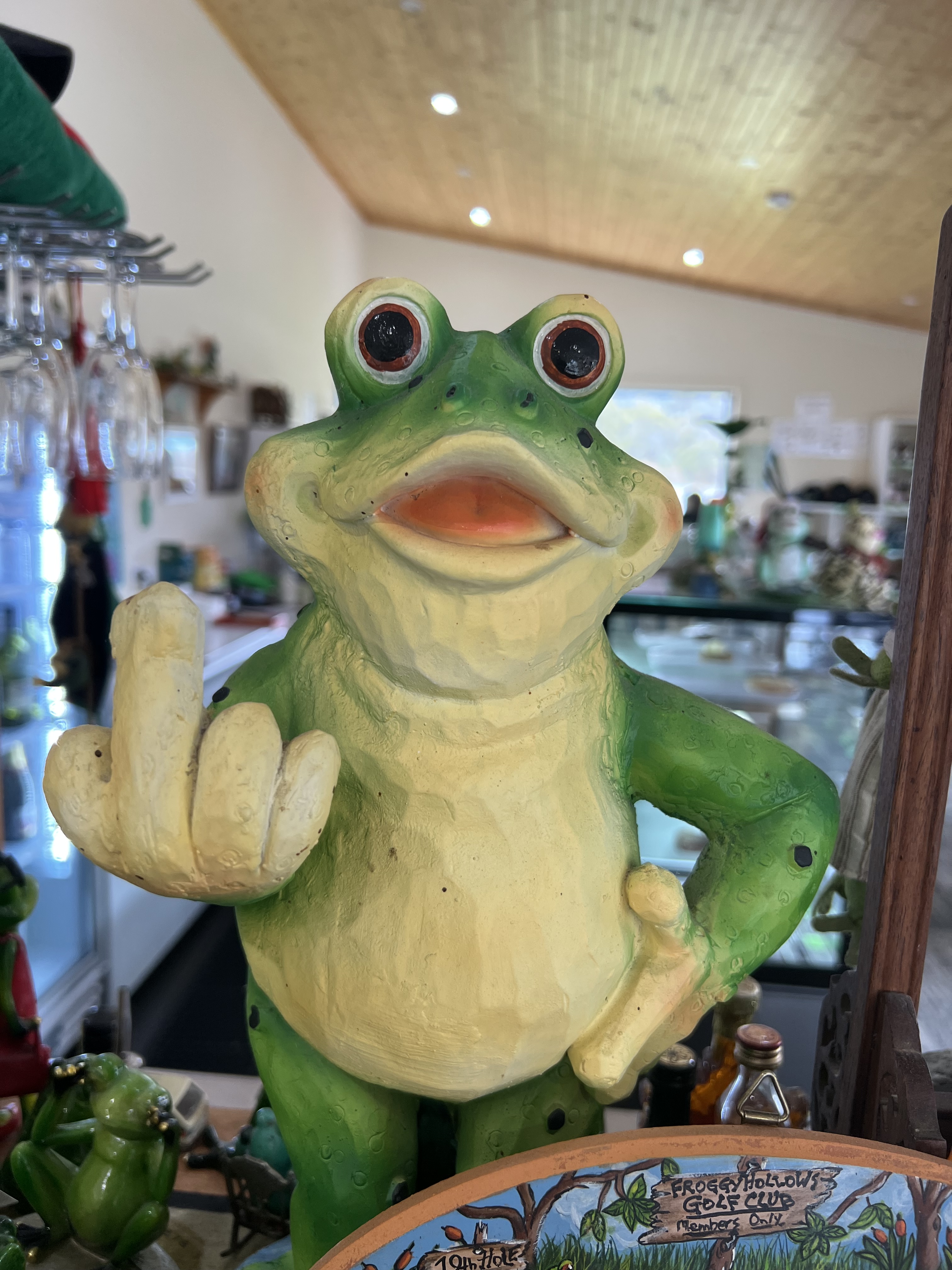 Flowerdale had a road sign and 4 lovely ladies congregated near a corner that stared at us in a Monty Python sort of way as we rounded into their view. “Are you lost luv?” Nav Guy tried to assure them that we weren’t but, just to be sure, clarified directions as a conversation starter. Nav Guy, “We’re heading toward Flowerdale”. Main Lady, “You’re in Flowerdale Luv”. Nav Guy had Flowerday, well, nowhere near there. When we explained that we were on that particular road in order to avoid traffic to our destination they just stared at us and offered, “That route is a beet long and very cuuuurvy.” They all shook their heads and concurred on a different (and better) route that would save us 50km. We boiked off, “Thank you Ladies!” “Roid safe you twos”.