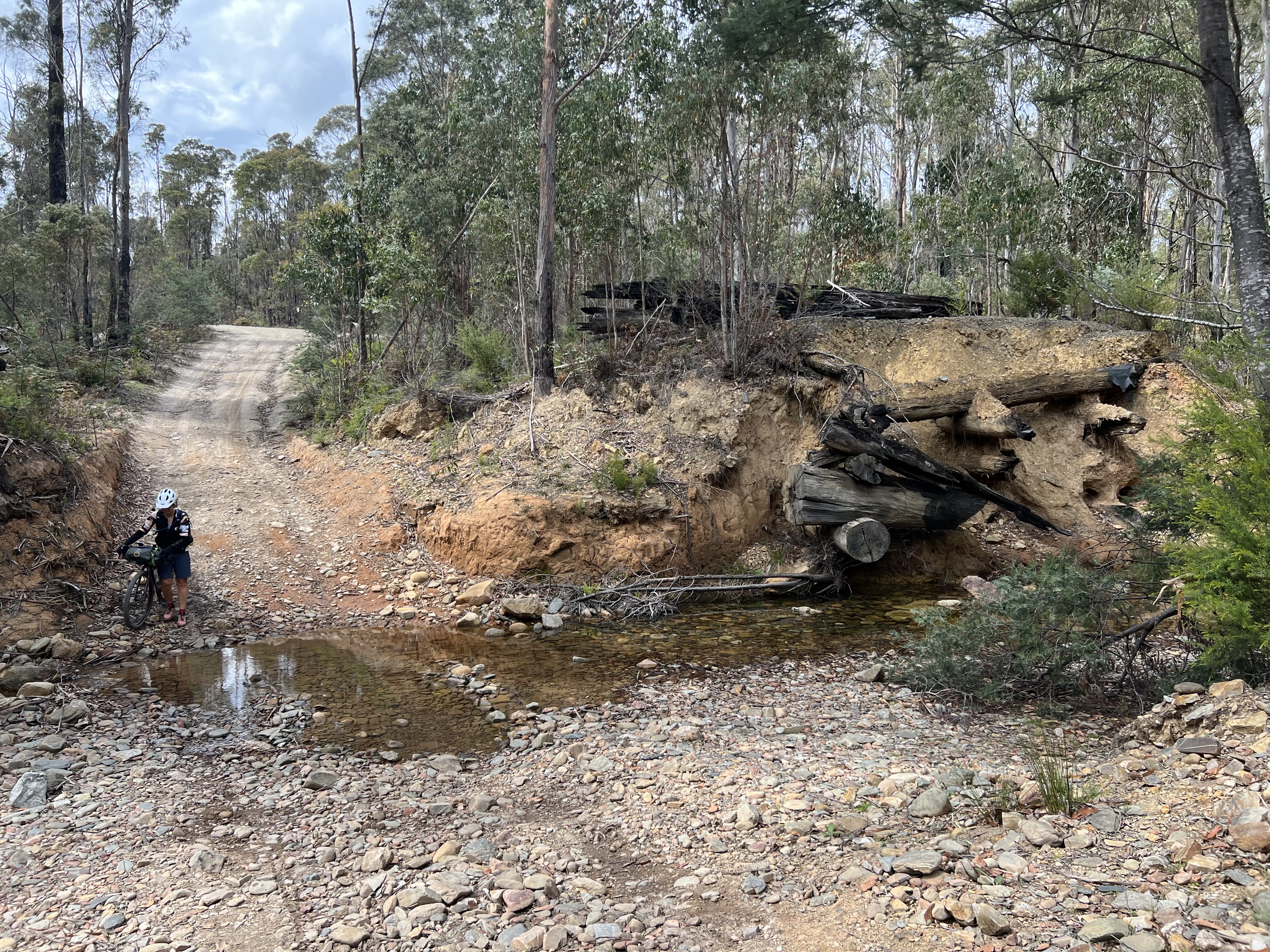 Heading north out of Zeehan, our rough “plan” was to arrange for a ride on the infamous Western Explorer Route in the Tarkine to shorten our 170km day (estimated 2,000 vertical meters of elevation). This was to make it rideable in one day. But when our local driver, the incomparable Doug, took 3 hours to cover the first 50kms in his van we decided this route was not safely passable on bike in one day. Perhaps not even two. At least not without a tent. And food. And water. Do I need to remind you of Gear Guy Bike Packing rule number 1? The only time you need a tent is when you don’t have one. This road was out there. Remote doesn’t quite describe it. No cell coverage. No vehicle traffic. No road really. It was just a meandering double track of holes, gravel and dust. For 170 km. All I could think was: “Thank heaven we didn’t bring the damn tent!” Doug kindly offered and we quickly accepted a boost to our next accommodation – Roger River. Roger River isn’t even on the map. No Roger. No River. But a noice farm house to stay in, with a noice fireplace. Routing disaster averted. Doug is an example of the often heard about West Tassies’ willingness – no, eagerness, to selflessly help folks.