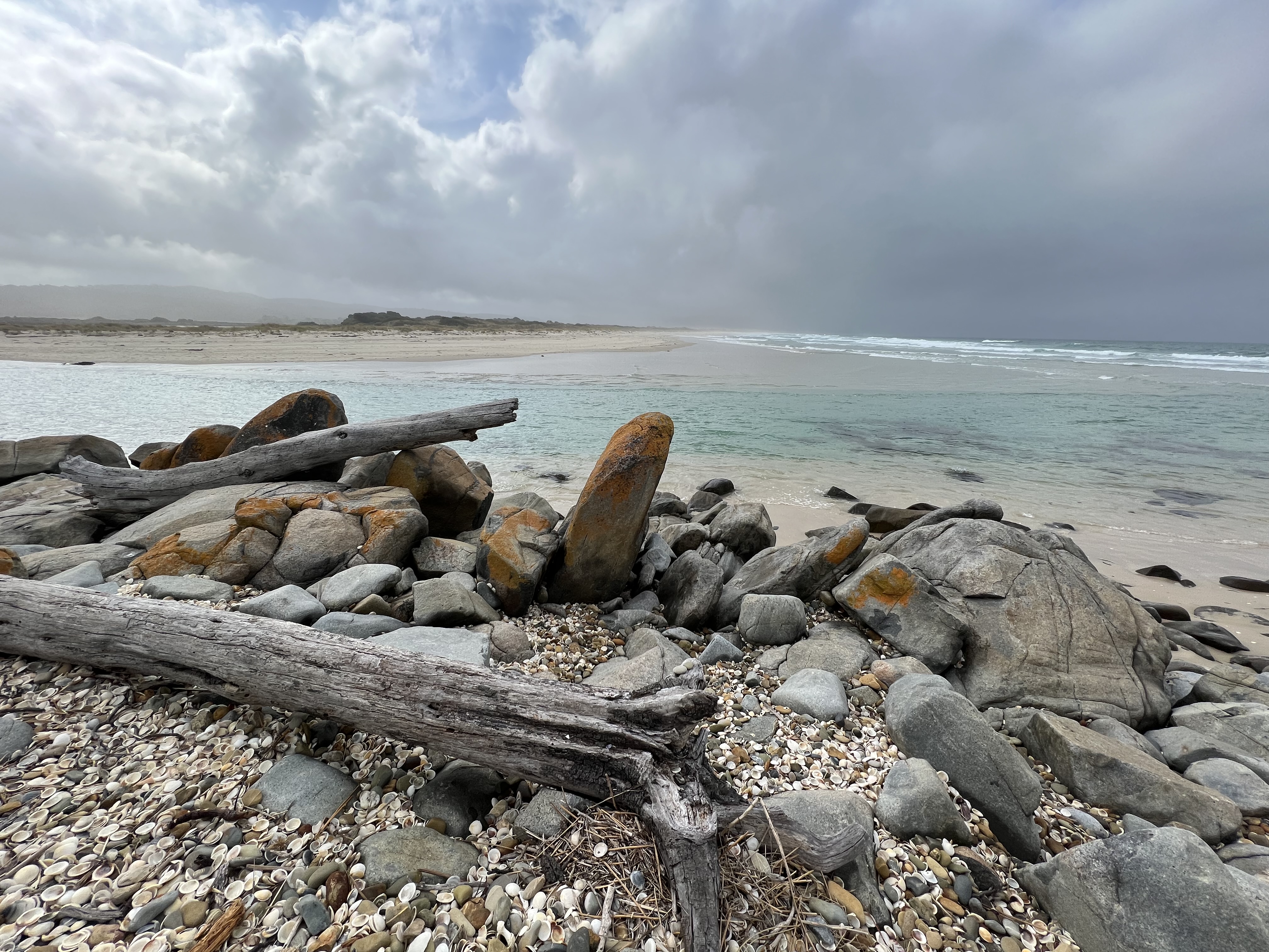 On our figure 8 route, we looped back south through the Tarkine. Corinna (a town on the map only) is in the heart of the Tarkine. The heart and some would say the soul of the Tassie Rain Forest. Folklore lives here with heaps of history of “piners and miners”. (The former being loggers). There are several former piners, miners and salty dogs (sea faring retirees) inhabiting Corinna working on the river as guides, on the river ferry, in local maintenance or all three. They speak with a uniquely thick West Tassie dialect that is hard to follow but is captivating nonetheless. It’s like listening to a bad recording of an old Johnny Cash song – you can’t quite make it out – but it reeks with depth of subject and passion. We caught ourselves transfixed by our Salty Dog river boat guide as he unwound for us the story of a local river boat sinking which happened over 100 years ago as he pointed out the wreckage. He gruffed about the importance of the many tree species unique to Tasmania and how crucial the river and the rainforest is to all of Tasmania. He left you no doubt on this. Truly, this was a guy that would be full of stories over a beer, or ten.