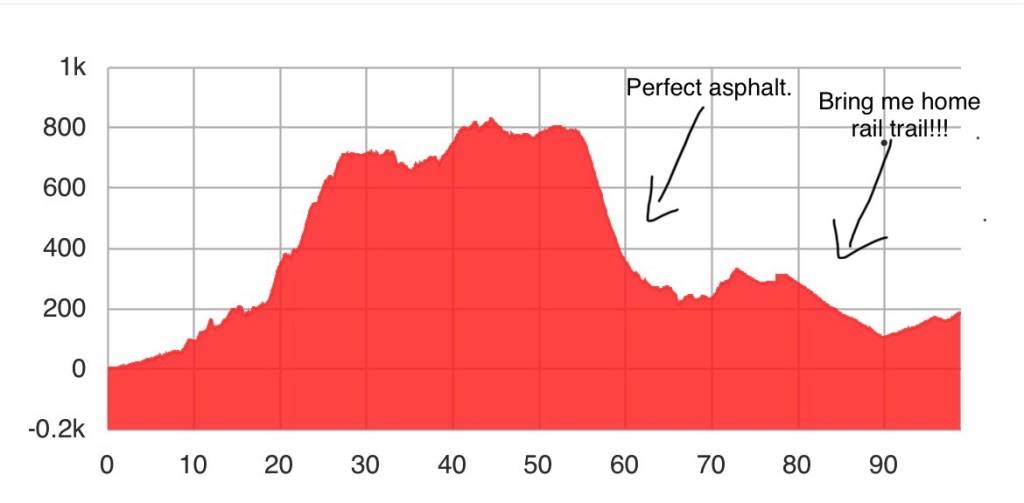 - Toughest day – 43kms uphill out of St Helens, rain squalls, head wind. And…..loving it. Kind of like the Creston/Salmo ride in BC, but on double track gravel.