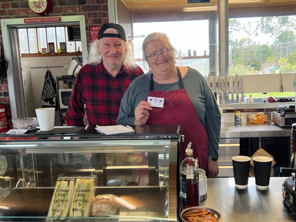 Zeehan – home of The Pitstop – a fantastic cafe where we took refuge to dry out from 4 hours of relentless rainforest rain and to chat with owners Sue and husband Ian. Sue made fun of Gear Guy’s unbrushed long hair. She said he should “Do somting wit it”. Perhaps like Ian’s?
