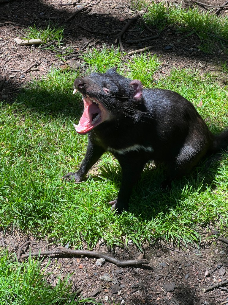 Australian animals – we’ll never get used to snakes. We saw many on the sides of roads, apparently warming up. Wallabies are as plentiful as deer are in Canada. Some were large enough they may have been kangaroos. Pademelons are petite members of the kangaroo and wallaby family. Devils and Quolls were only seen in the animal preserve, but that counts as they are endangered. Echidnas win the photogenic prize, whereas wombats, though adorable, were too quick for my camera. Platypus and penguins, although supposedly common in the wild – were elusive to us.